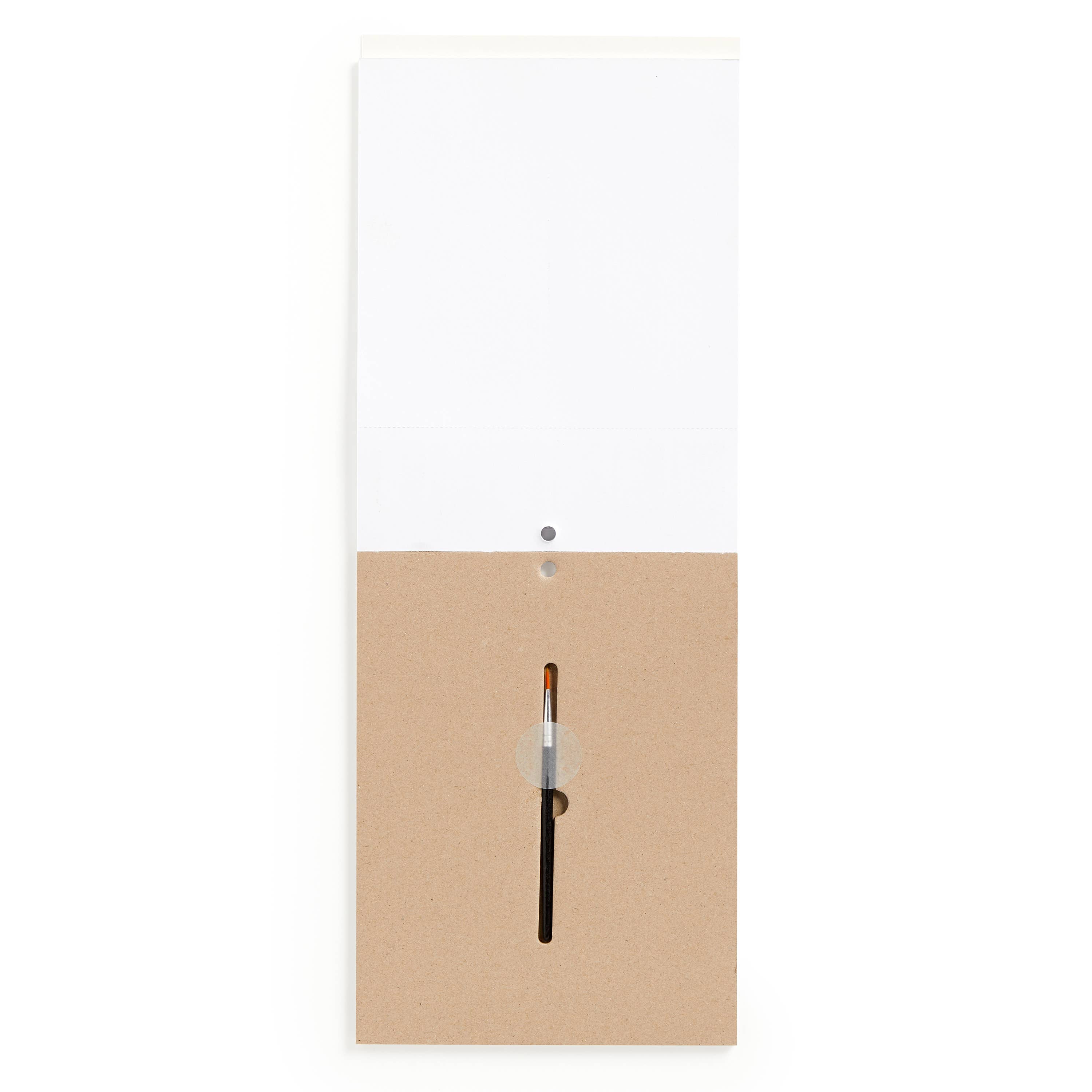 The Frank Lloyd Wright Painting Kit from Mudpuppy includes 10 paintable cards each with a unique geometric pattern illustration as well as a built-in watercolor paint palette at the top of each card and a water color brush which is neatly packaged in place with a cardboard insert at the back of the pad.