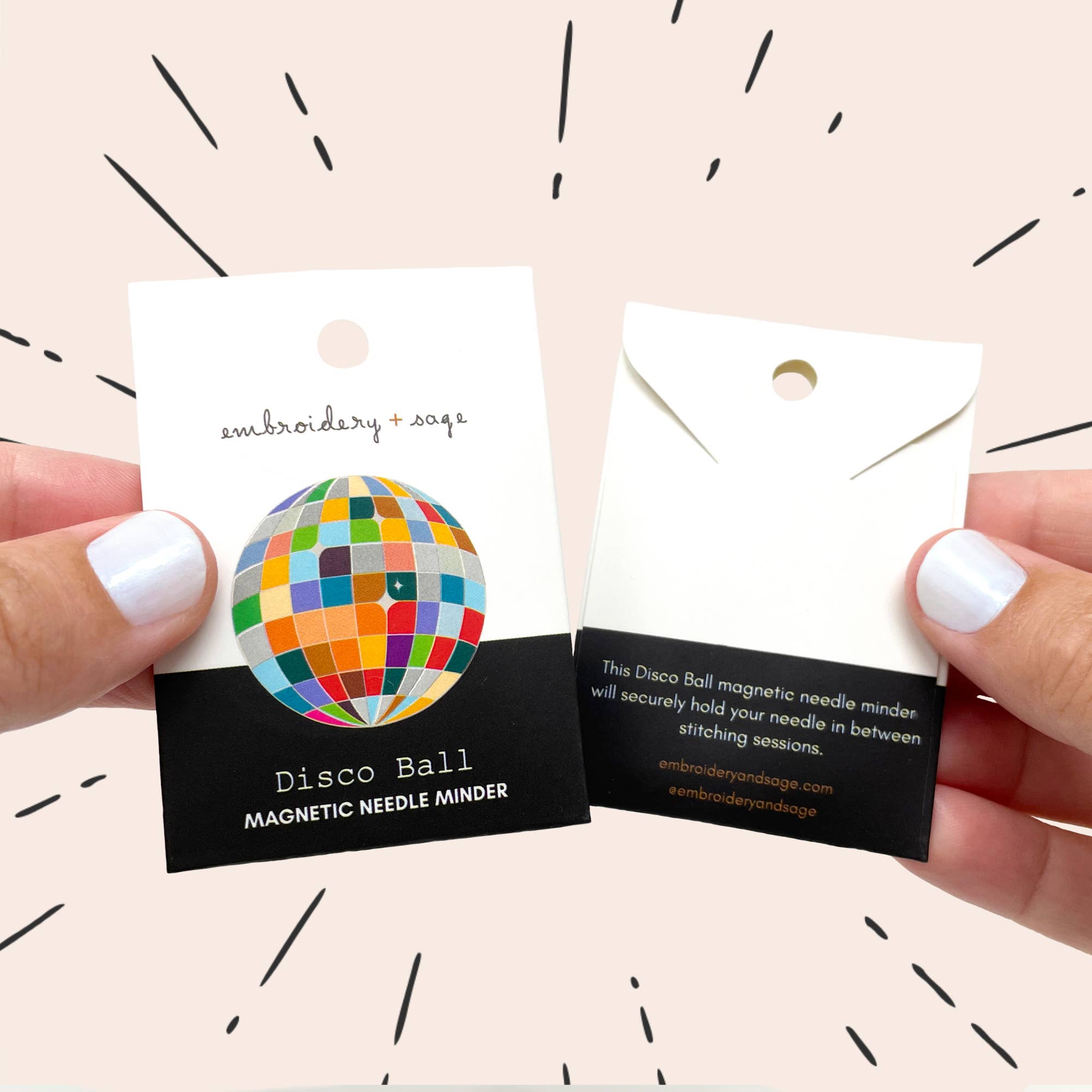 The Disco Ball needle minder will securely hold your needle in between stitching sessions.