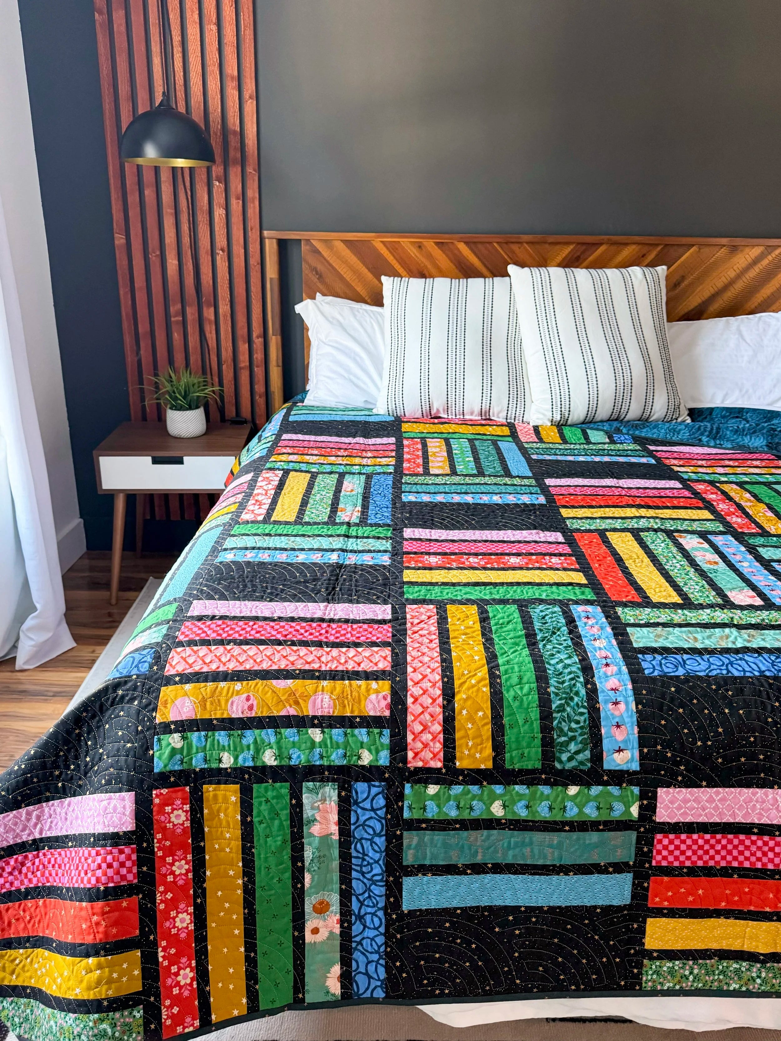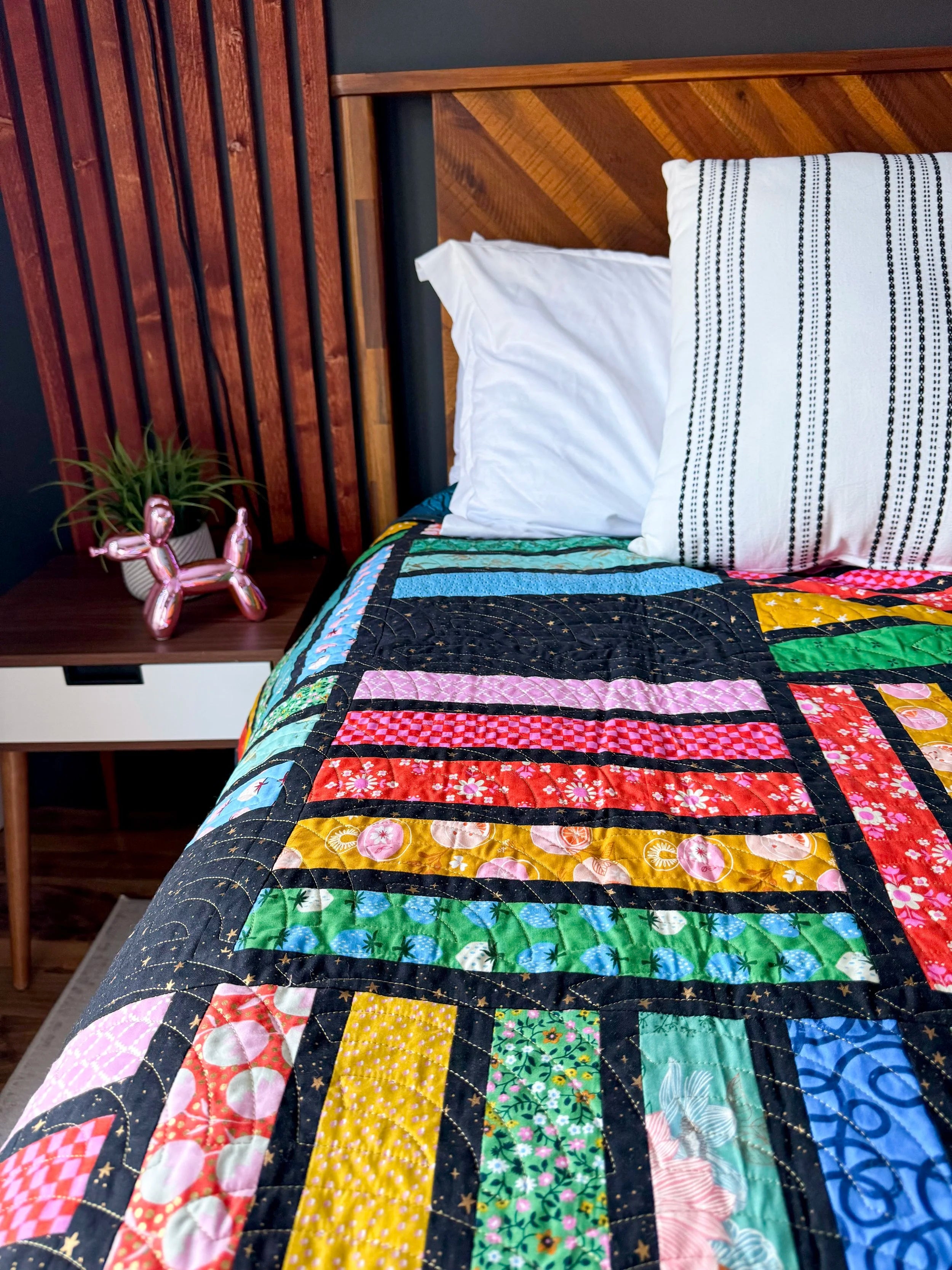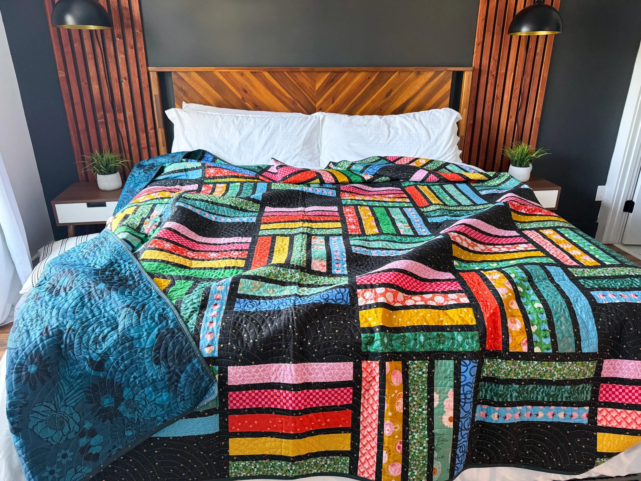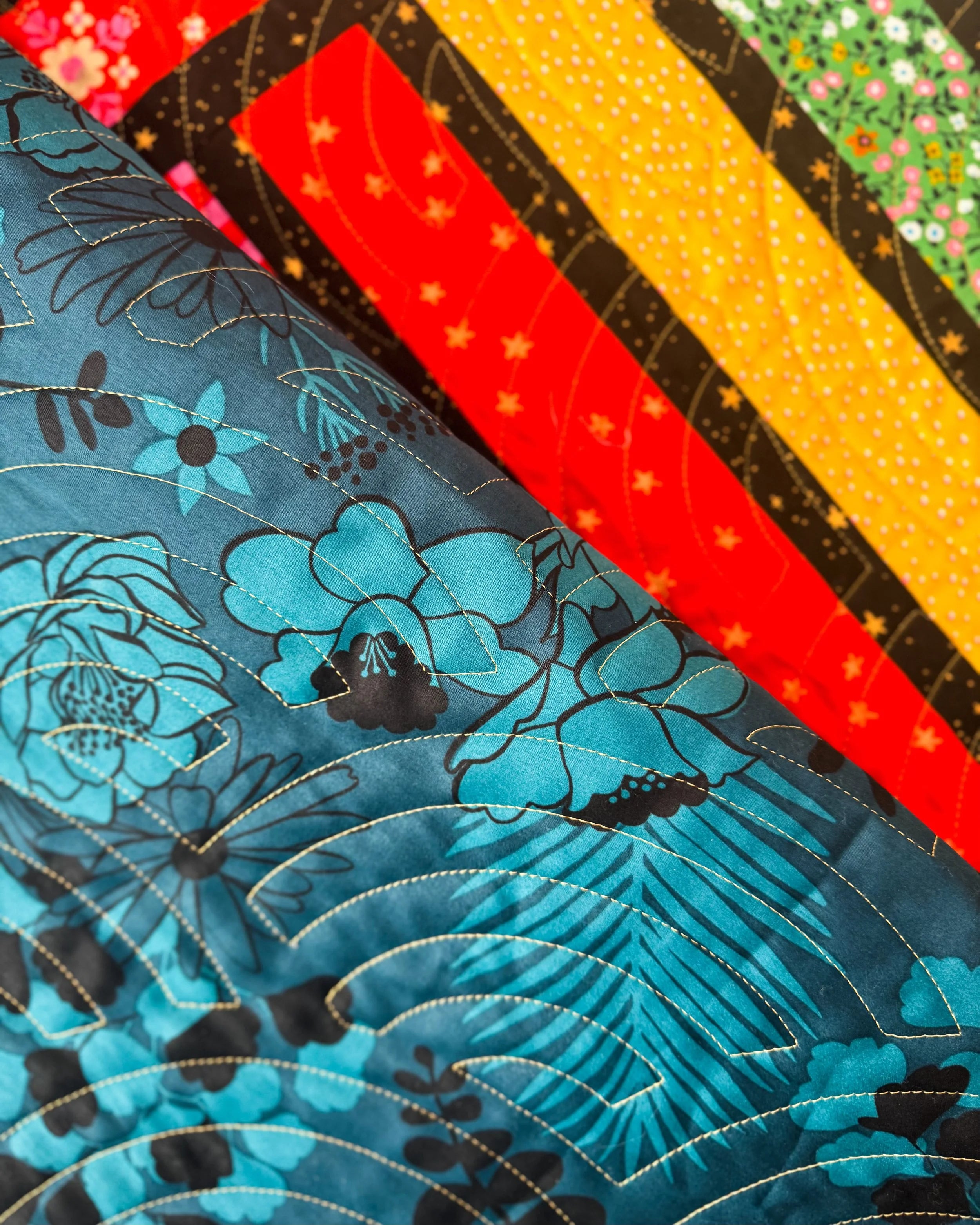 Woman-owned and handmade, each quilt is designed and sewn by Jenny in Wake Forest, North Carolina. Every piece celebrates color, creativity, and connection, from heirloom memory quilts to playful, modern designs. Made with care to spark joy and bring beauty to your home and heart.
