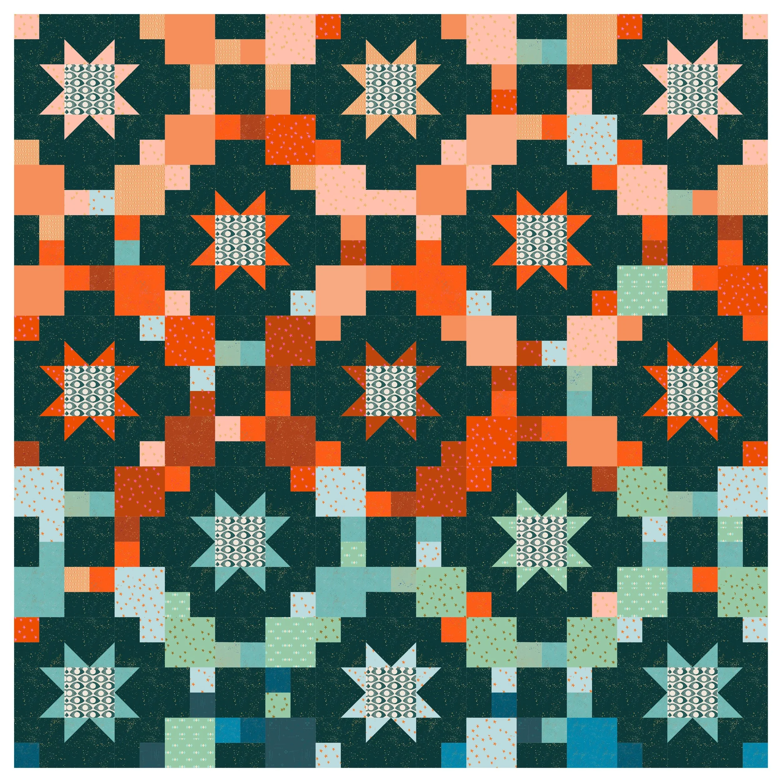 This palette will set us up for some Taylor-style heart on sleeve storytelling in our quilts. It has the depth of a smoky backstage teal, the fire of sequined orange, and the warmth of peach chiffon under the spotlight.