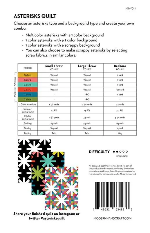 Instructions for Baby, Throw, Twin, and Bed sizes.